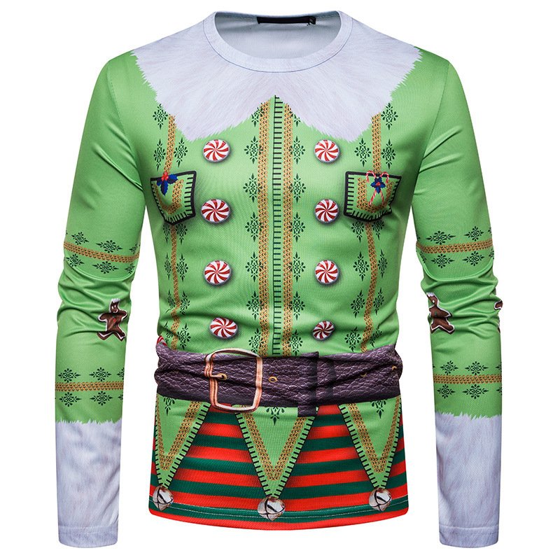 New 3D personality printing fashion men’s Christmas long-sleeved T-shirt CT486